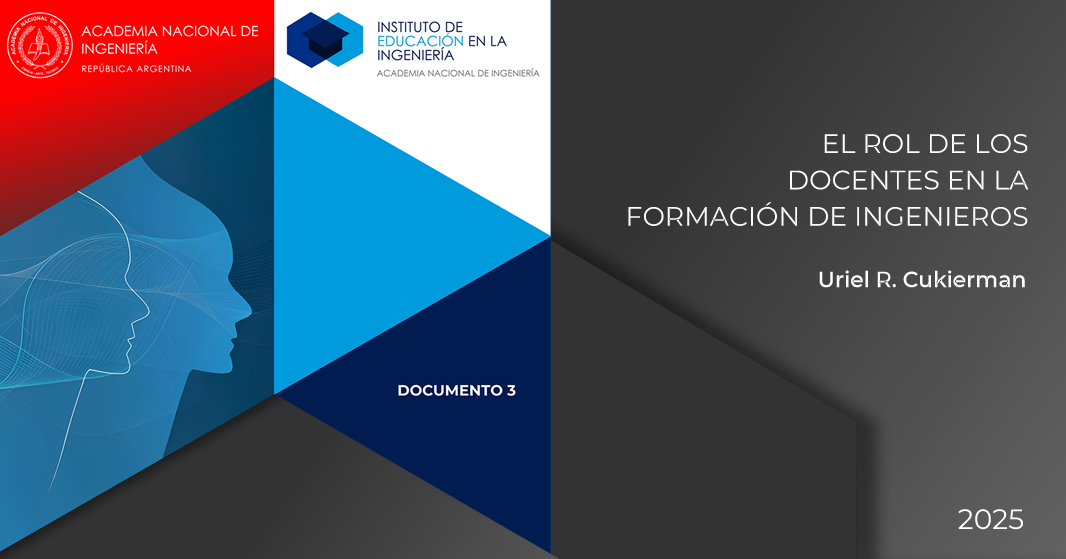 Se encuentra disponible en el sitio web el documento emitido por el IdEI El rol de los docentes en la formación de ingenieros, elaborado por el Académico Dr. Ing. Uriel Cukierman. Esta investigación, prioritaria para el Instituto desde sus inicios, se basa en la voz de los docentes y destaca la necesidad de fortalecer su formación más allá de lo técnico, en un contexto de cambios tecnológicos y socioculturales.