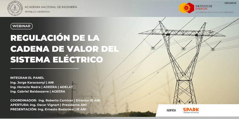 Compartimos el video del webinar organizado por el IE sobre el tema "Regulación de la cadena de valor del sistema eléctrico.", que se realizará el miércoles 14 de mayo a las 14:30 horas a través de la Plataforma Zoom. La sesión contó con un panel de expertos integrado por los Ings. Jorge Karacsonyi (ANI), Horacio Nadra (ADEERA, ADELAT) y Gabriel Baldassarre (AGEERA). Compartimos el enlace al video de la sesión disponible en nuestro canal de YouTube, de la que participaron más de 100 inscriptos interesados en el tema.
