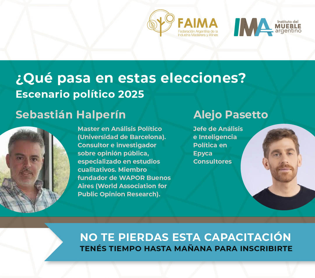 Invitamos a todos los integrantes de la cadena forestal-maderera-mueblera a sumarse a esta charla a cargo de los especialistas Sebastián Halperin y Alejo Pasetto.